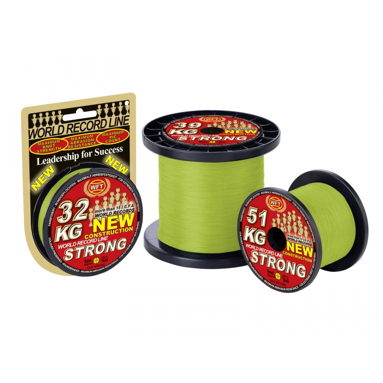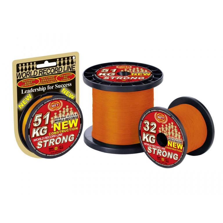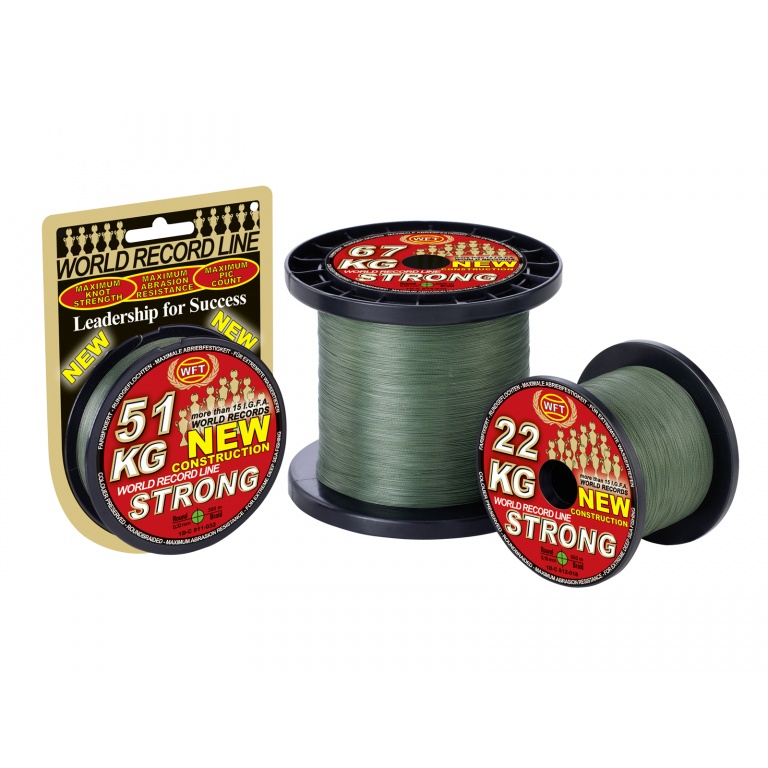 La tresse World Fishing Tackle KG STRONG présente une structure complexe 8 brins qui supporte jusqu'à 51kg. Cette structure a été utilisée par WFT bien avant que d'autres fabricants ne découvrent cette technologie. Un autre atout de cette version 8 brins est sa rondeur parfaite, qui de fait permet une résistance aux nœuds exceptionnelle. Cette caractéristique avant-gardiste, est la clef pour réussir des lancers à de très longues distances, la bobine se déroule et s'enroule sans force contraire.
